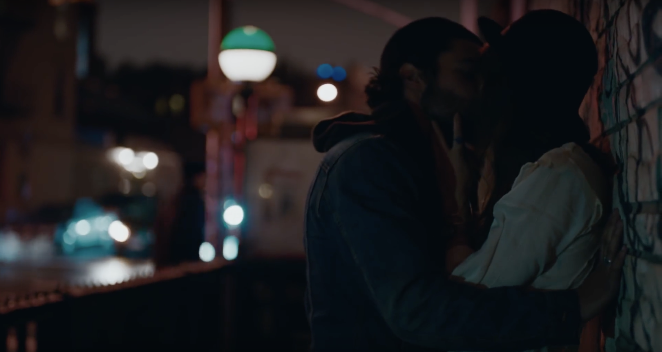 With just a slight nod and a shy laugh, she looks into his eyes for a moment before he kisses her. Realizing that he’d finally found her and that they have the night ahead of them, they make their way over the ledge to look out over the city.